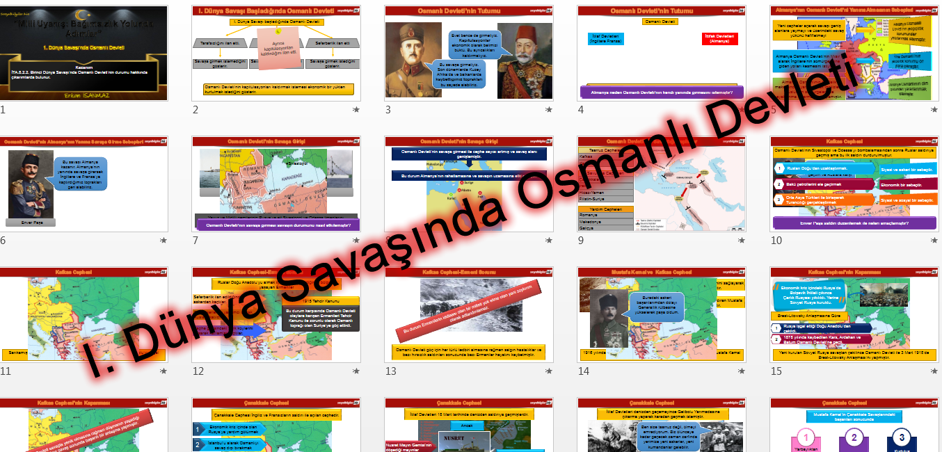 "İTA.8.2.2. Birinci Dünya Savaşı’nda Osmanlı Devleti’nin durumu hakkında çıkarımlarda bulunur." kazanımı için hazırlanan sunudur. Ekli dosyayı görüntüle 28670