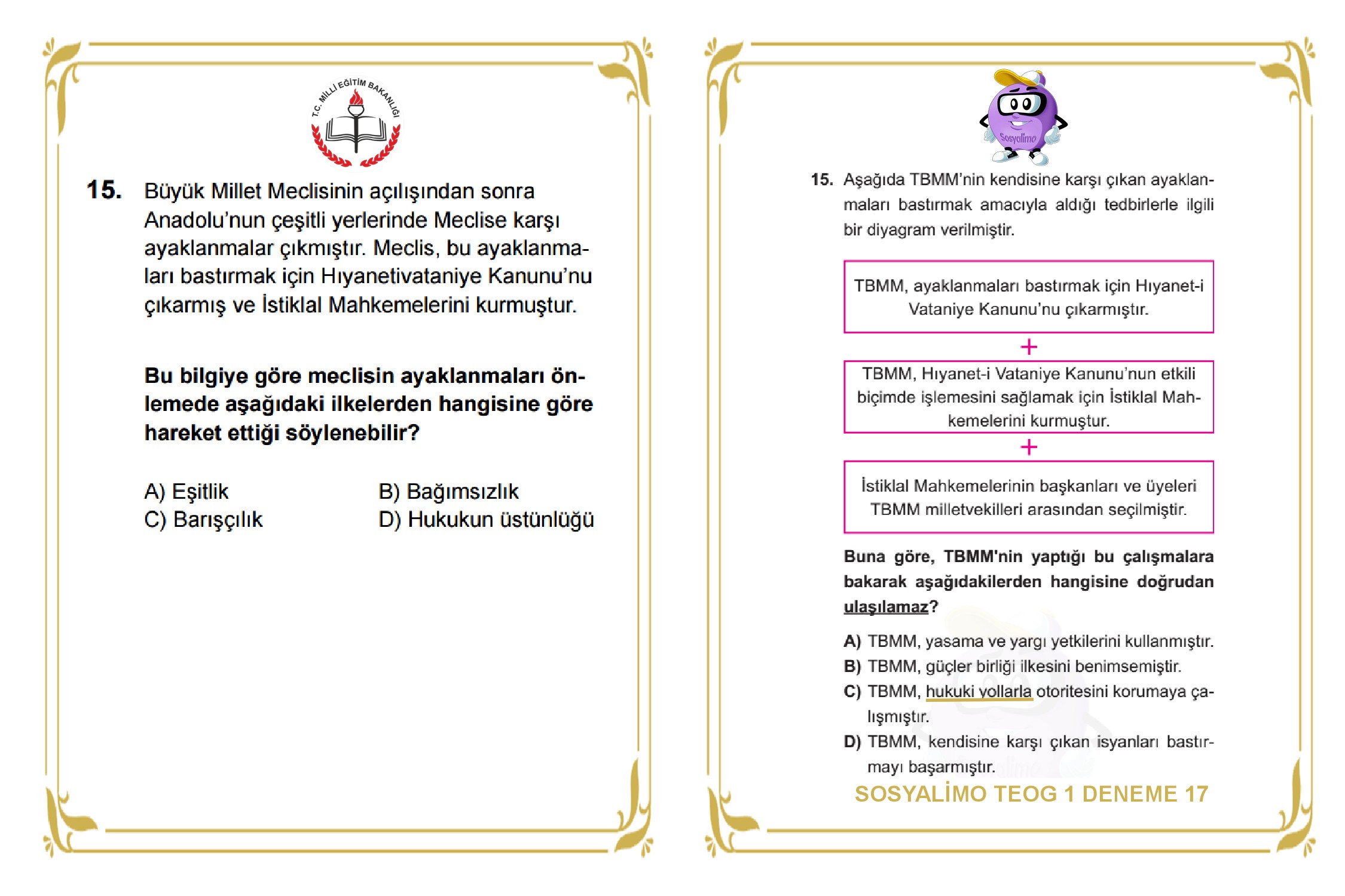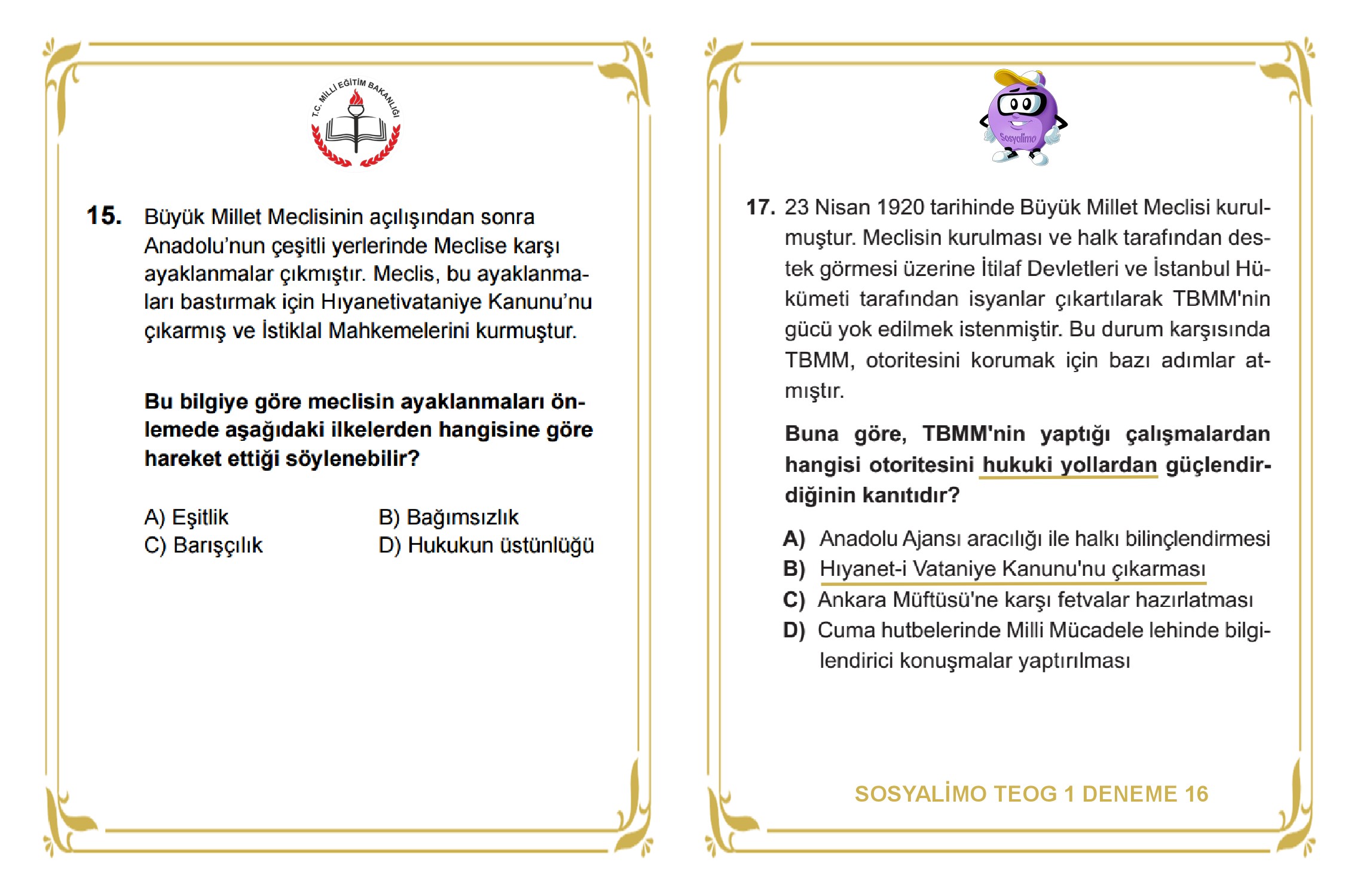 ARKADAŞLAR GEÇEN SENE 12 TANE TEOG2 SORUSUNU YAKALAMIŞTIK. ŞİMDİ 2016 KASIM AYINDA YAPILAN TEOG 1 SINAVINDA SOSYALİMO OLARAK YAYINLADIĞIMIZ DENEMELERİMİZ BAŞTA OLMAK ÜZERE BİREBİR AYNI OLAN VE ÇOK BENZER OLAN SORULARIMIZI BİR DOSYA OLARAK HAZIRLADIK. 20 SORUNUN 16'SINDA AYNI YA DA ÇOK YAKIN SORULAR YAKALADIK. FARKLI ÜRÜNLERİMİZDE TOPLAMDA 60 ADET SORU BENZER VE AYNI OLDUĞUNU TESPİT ETTİK. DARISI 2. DÖNEME. EMEĞİ GEÇEN SİTEMİZ MODERATÖRLERİNE DE TEŞEKKÜR EDİYORUZ. TÜM SORULARI İNCELEMEK VE İNDİRMEK İÇİN RESİMLERİ TIKLAYINIZ.