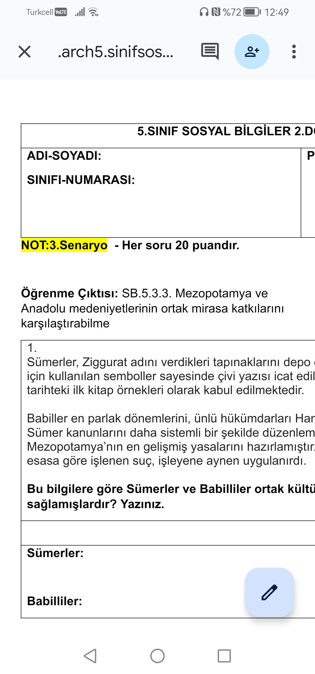 5.sınıflar 2.DÖNEM 1.YAZILI