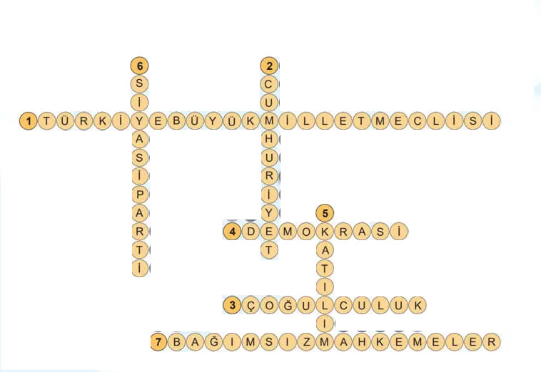 Kartlara yazdığınız kelimeleri demokrasiyle ilişkili olanlar, cumhuriyetle ilişkili olanlar ve her iki kavramla ilişkili olanlar şeklinde aşağıdaki şemaya yazarak sınıflandırınız.Cevap: