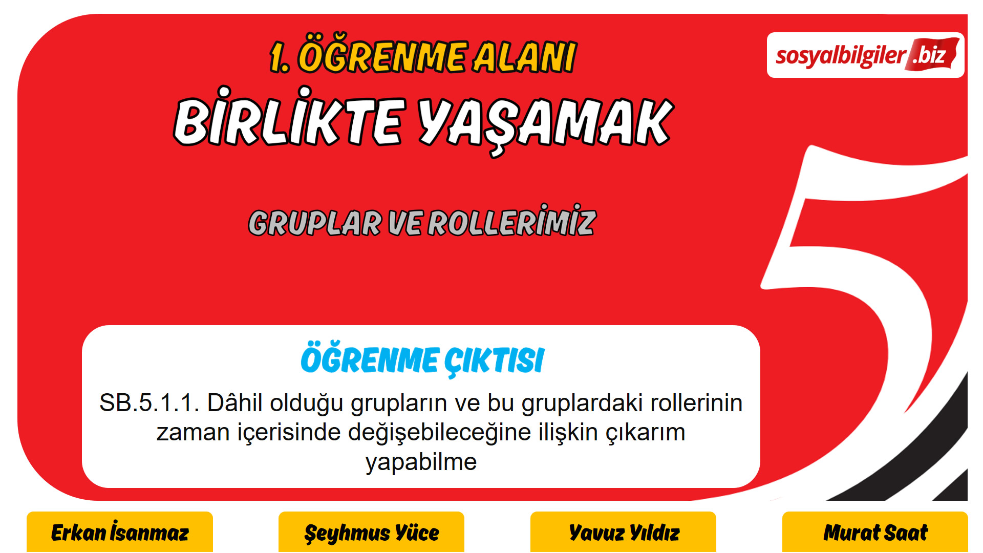 Uzun bir emek sonucu yeni müfredata uygun şekilde 5. sınıf 1. Öğrenme Alanı: Birlikte Yaşamak 1. öğrenim çıktısı "SB.5.1.1. Dâhil olduğu grupların ve bu gruplardaki rollerinin zaman içerisinde değişebileceğine ilişkin çıkarım yapabilmeSB.5.1.1. Dâhil olduğu grupların ve bu gruplardaki rollerinin zaman içerisinde değişebileceğine ilişkin çıkarım yapabilme" için sunumu tamamladık.