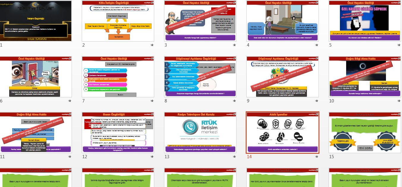 erkanisanmaz' Alıntı: SB.7.1.4. İletişim araçlarından yararlanırken haklarını kullanır ve sorumluluklarını yerine getirir. kazanımı için hazırlanan sunudur. Ekli dosyayı görüntüle 28537 Genişletmek için tıkla ... Güzel