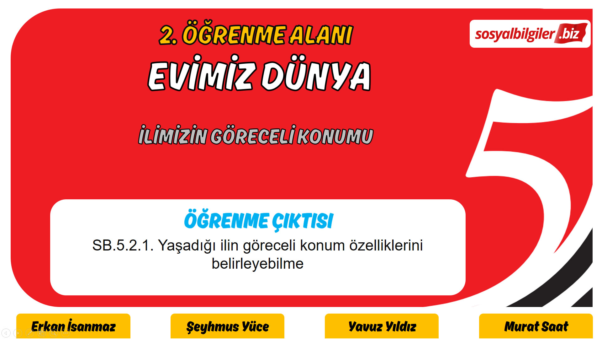 "SB.5.2.1. Yaşadığı ilin göreceli konum özelliklerini belirleyebilme" öğrenim çıktısı için hazırladığımız slayttır.