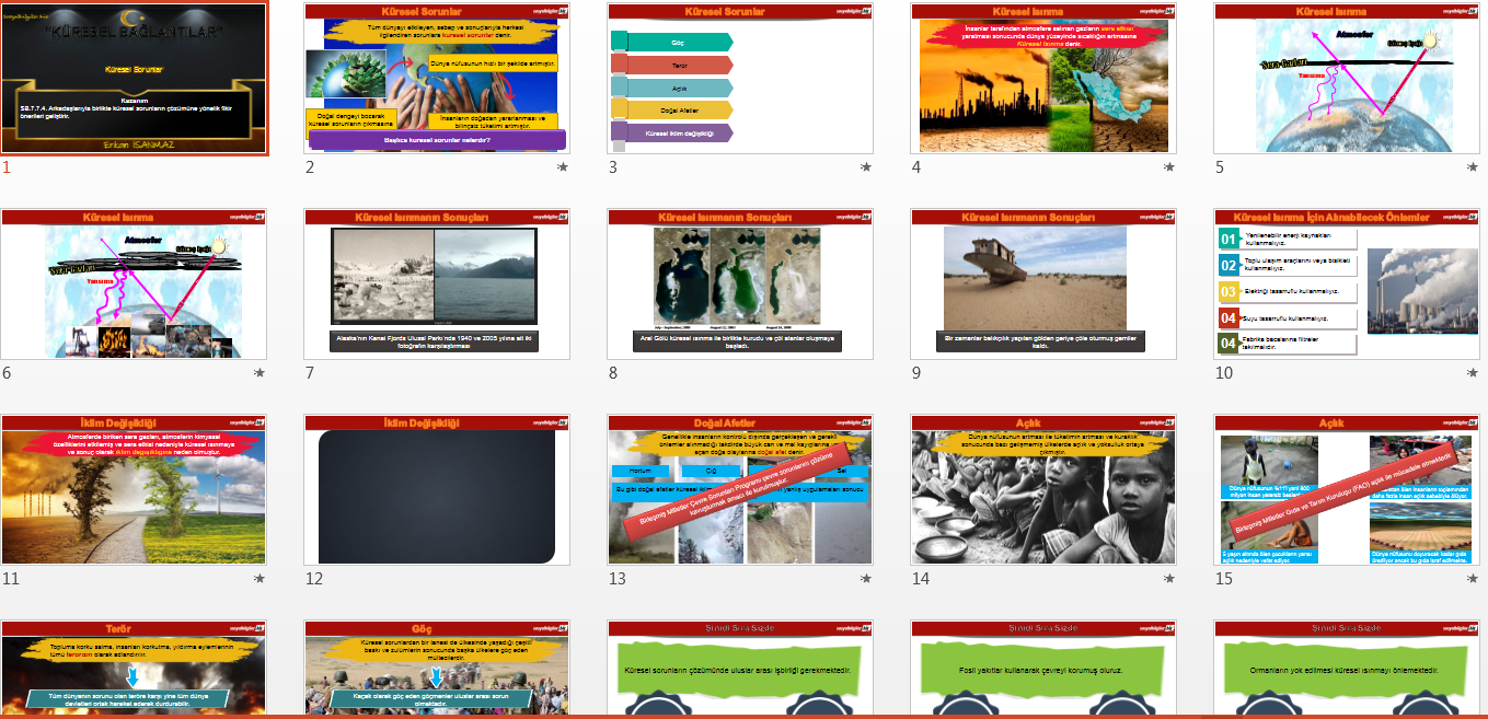 "SB.7.7.4. Arkadaşlarıyla birlikte küresel sorunların çözümüne yönelik fikir önerileri geliştirir." kazanımı için hazırlanmış sunudur.