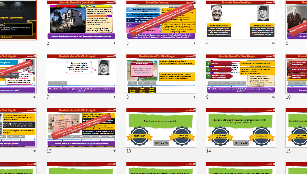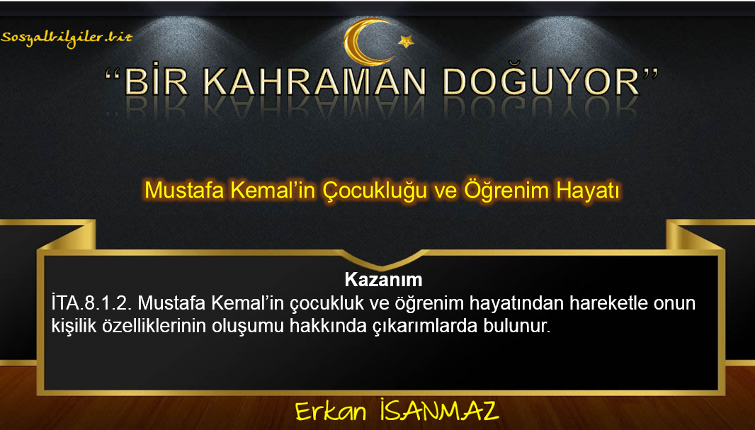 süper olmuş hocam"İTA.1.2. Mustafa Kemal’in çocukluk ve öğrenim hayatından hareketle onun kişilik özelliklerinin oluşumu hakkında çıkarımlarda bulunur." kazanımı için hazırlanan sunudur.