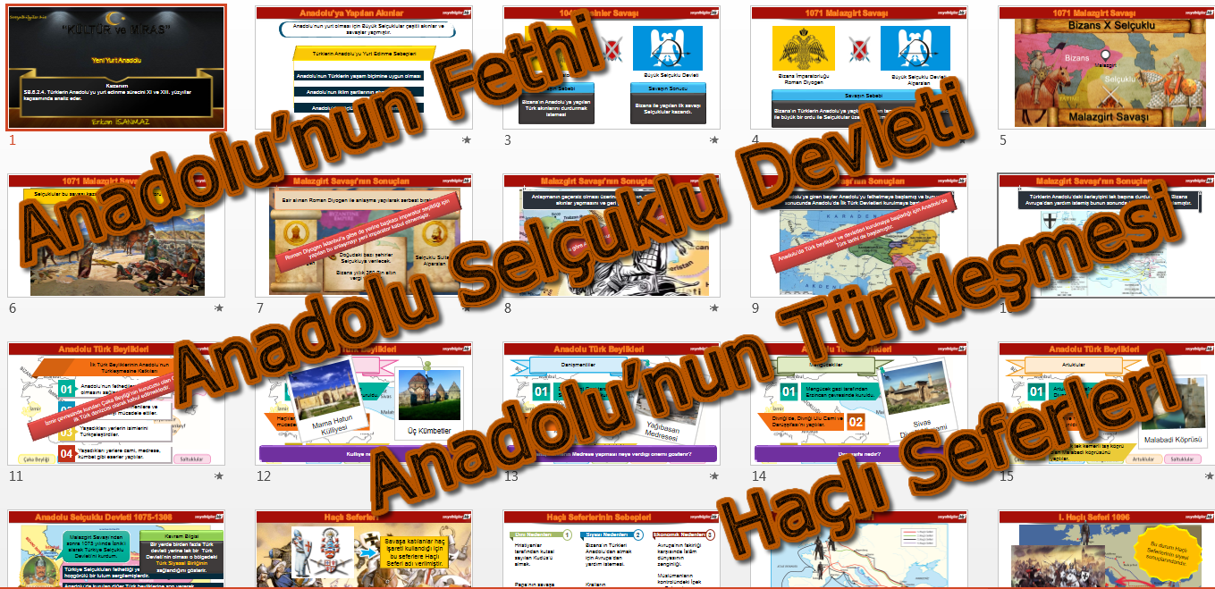 "SB.6.2.4. Türklerin Anadolu’yu yurt edinme sürecini XI ve XIII. yüzyıllar kapsamında analiz eder." kazanımı için hazırlanan sunumdur.