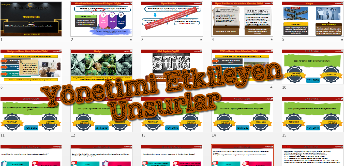 ''SB.6.6.3. Yönetimin karar alma sürecini etkileyen unsurları analiz eder." kazanımı için hazırlanan sunudur.