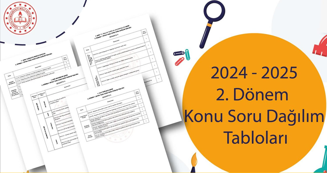 - Örnek Senaryolar ve Soru Örnekleri: MEB, konu soru dağılım tablolarına örnek oluşturması açısından temel eğitim ve ortaöğretimdeki farklı branş ve sınıf düzeylerinde “konu soru dağılım tabloları” yayımlamıştır. Ayrıca, okul geneli yazılı sınavlarda hangi senaryonun kullanılacağı eğitim kurumu sınıf/alan zümresi tarafından belirlenecek ve tüm sınavlar belirlenen konu soru dağılım tablosuna göre hazırlanacaktır. Birinci dönemde olduğu gibi ikinci dönemde de okul genelinde yapılacak ortak yazılı sınavlar için yayımlanan bu örnek senaryolara yönelik soru örnekleri ve çözümleri de odsgm.meb.gov.tr adresinde yayımlanacaktır.