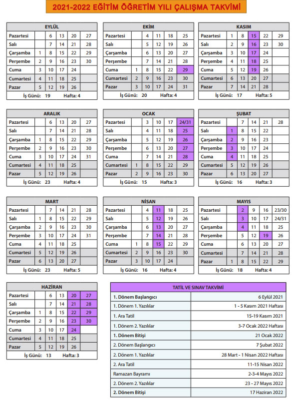 PDF olarak indirmek için 2021-2022 Çalışma Takvimi tıklayınız.