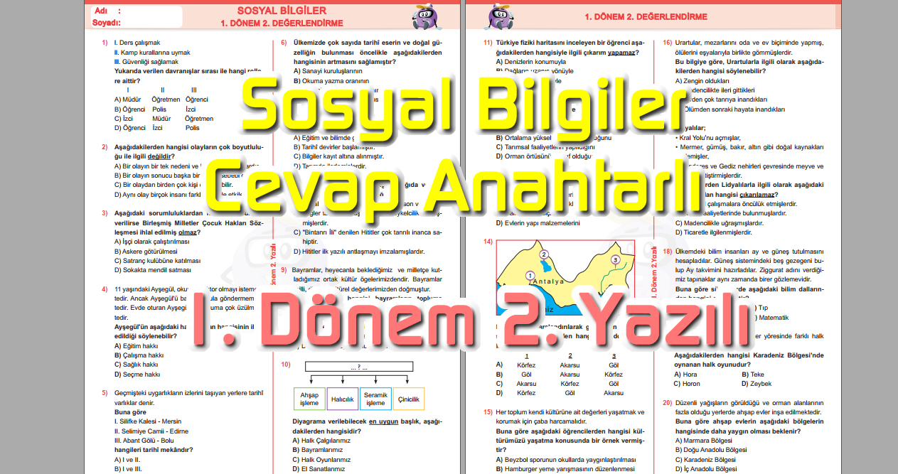 5. Sınıf Sosyal Bilgiler 1. Dönem 2. Yazılı – Cevap Anahtarlı