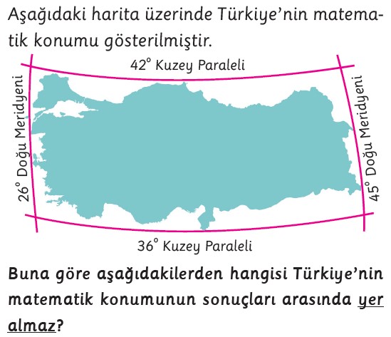 Jeopolitik, iklim, ulaşım gibi Türkiye’nin mutlak ve göreceli konumu ile ilgili özelliklerine yönelik çıkarımlarda bulunulacaktır.