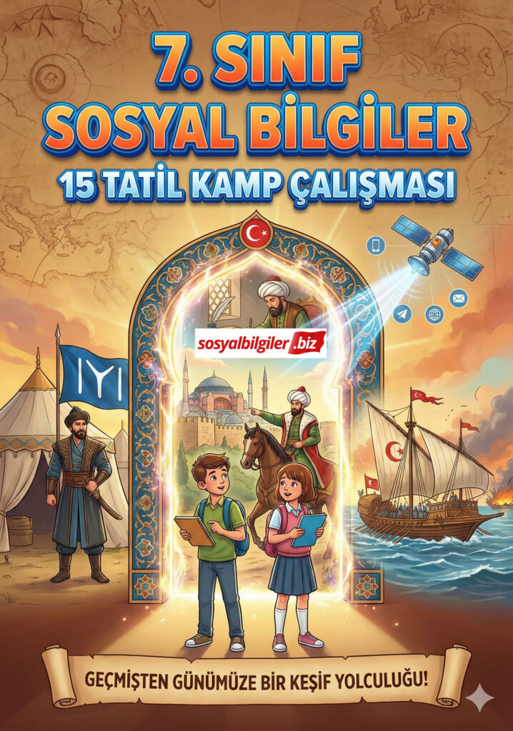 7. Sınıf Sosyal Bilgiler 15 Tatil Kamp Çalışması, öğrencilerin yarıyıl tatilini verimli geçirmeleri, eksiklerini kapatmaları ve ikinci döneme hazır başlamaları için tasarlanmış bir tekrar dokümanıdır.