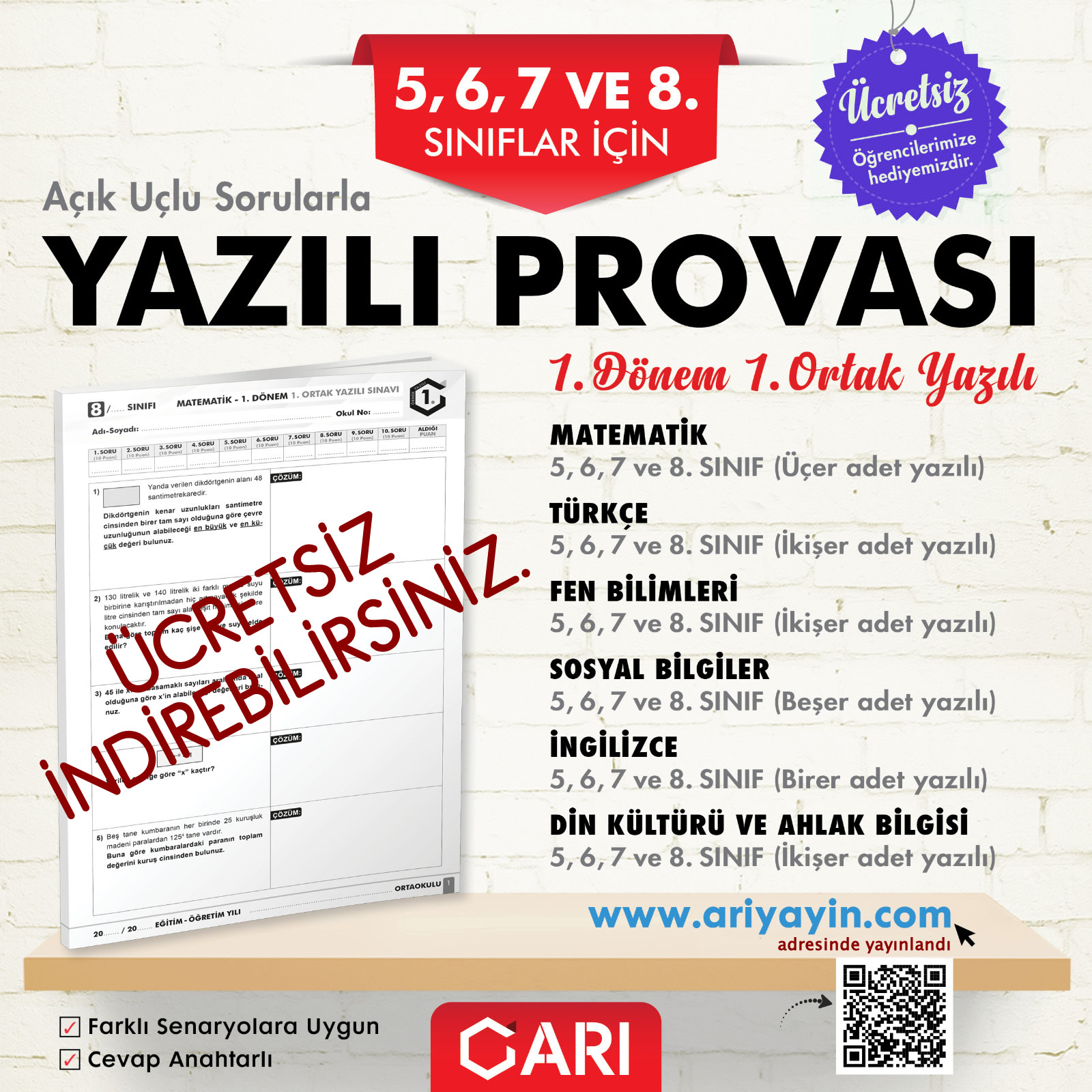 Arı Yayıncılık yazarları tarafından hazırlanan 5. sınıf, 6. sınıf, 7. sınıf ve 8. sınıflar için yeni sınav sistemi olan açık uçlu ve kısa cevaplı ortak sınavlara yönelik farklı senaryolara göre hazırlanan