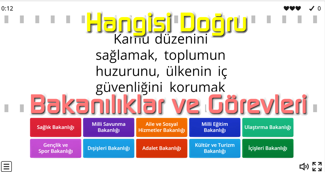 Eşleştirme Oyunu – Bakanlıklar ve Görevleri