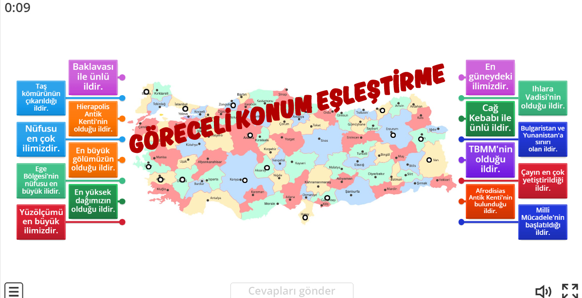Verilen göreceli konum ile ilgili özelliğin hangi ilimize ait olduğunu bularak eşleştiriniz.