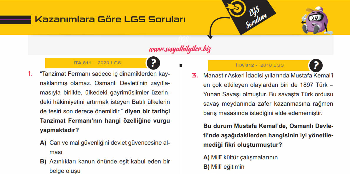 2018 yılından itibaren LGS de çıkmış olan tüm sorular kazanım kazanım tasnif edilmiştir.