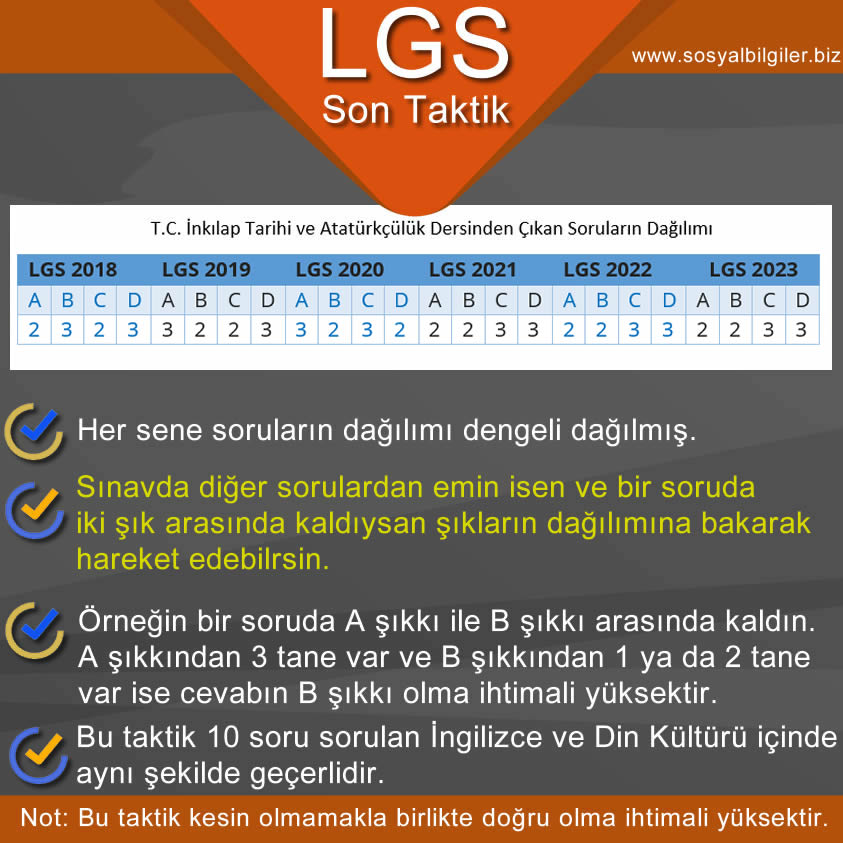 NOT 2: Bu taktik 10 soru sorulan İngilizce ve Din Kültürü ve Ahlak Bilgisi Dersi içinde aynı uygulanabilir.