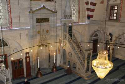 Tek kubbeli camiler içinde özel yer tutan caminin içine girildiğinde, yapının sınırlarının genişletildiğine tanık olunmaktadır. Ortadaki büyük kubbe köşelerdeki dört ayak üzerinden 2.75 m. genişliğinde sivri kemerlerle oturmaktadır. Giriş ile aynı eksende ve sade bir görünüşte olan mihrap nişi beş köşelidir. Mihrabı ve mühezzin mahfili mermerdendir. Yapının sağında minare yükselmektedir. Eski şekline uygun biçimde 1937 yılında yapılmıştır. Caminin avlusu, medresenin avlusu ile ortaktır. İşte bu ortak avlunun ortasında 12 kenarlı bir şadırvan bulunur. II. Mahmut devrine ait bir kitabesi vardır.