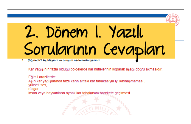 MEB tarafından yayınlanan 2. DÖNEM 1. YAZILI ÖRNEK SORU KİTAPÇIKLARI’nın cevaplandırılmış halidir.