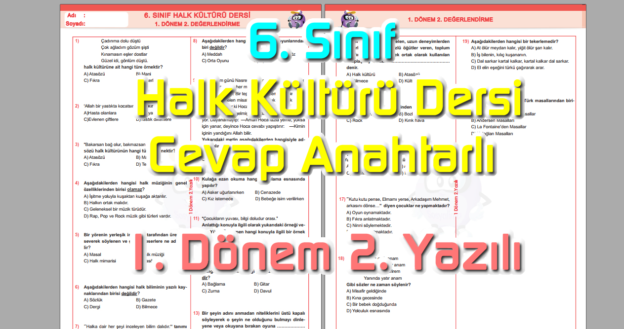 2022-2023 Seçmeli Halk Kültürü Dersi 6. Sınıf 1. Dönem 2. Yazılısı – Cevap Anahtarlı